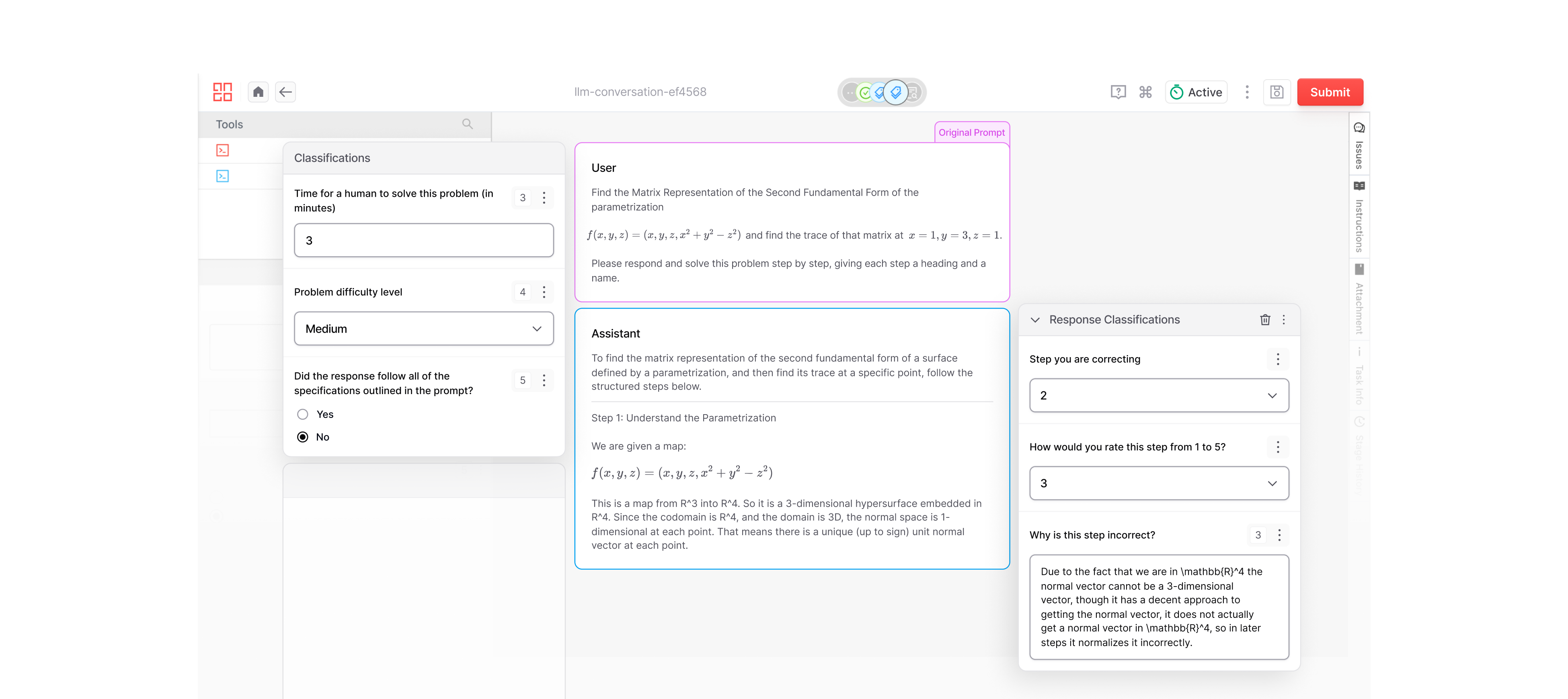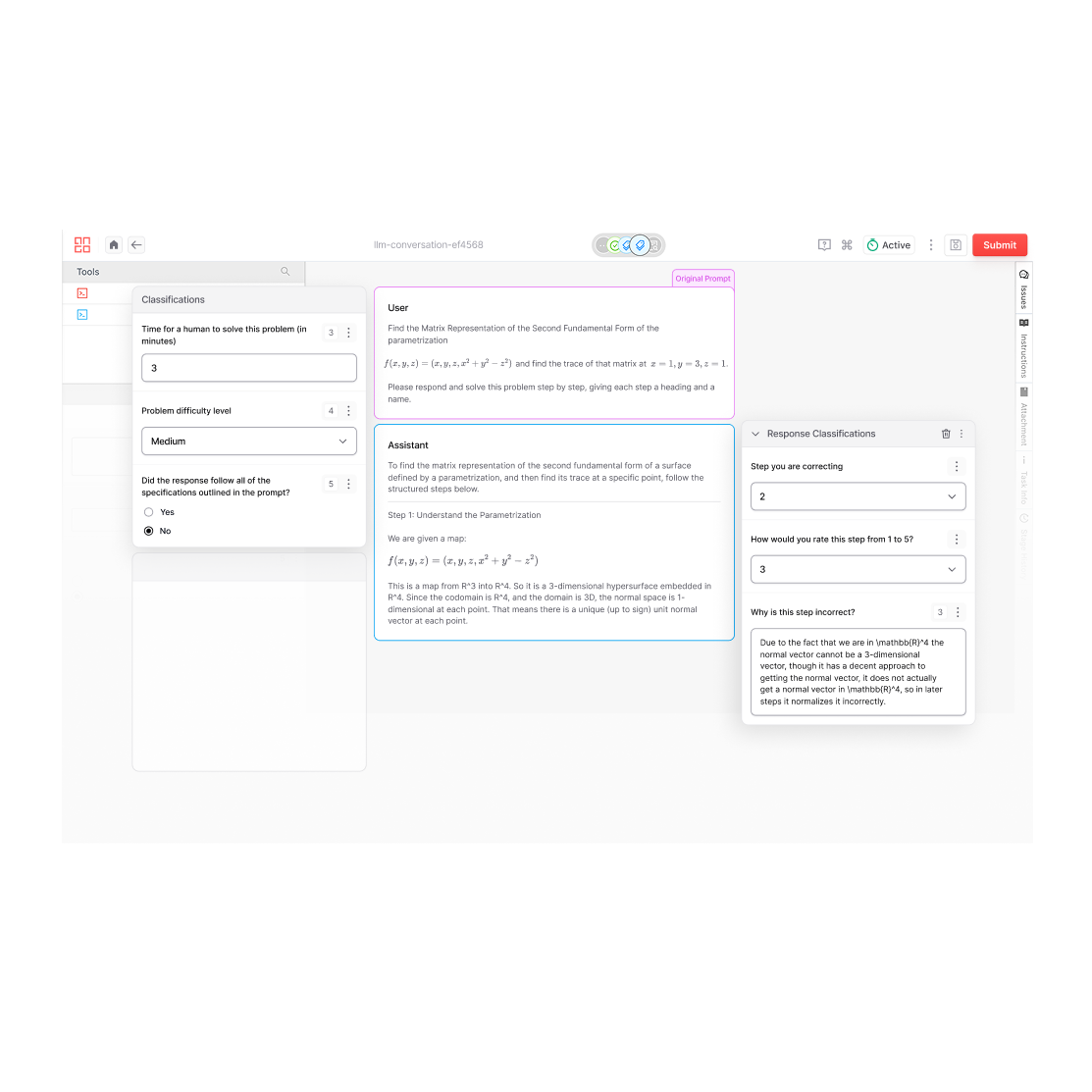 Identify incorrect reasoning, rewrite specific steps, and create gold traces your teams can trust.